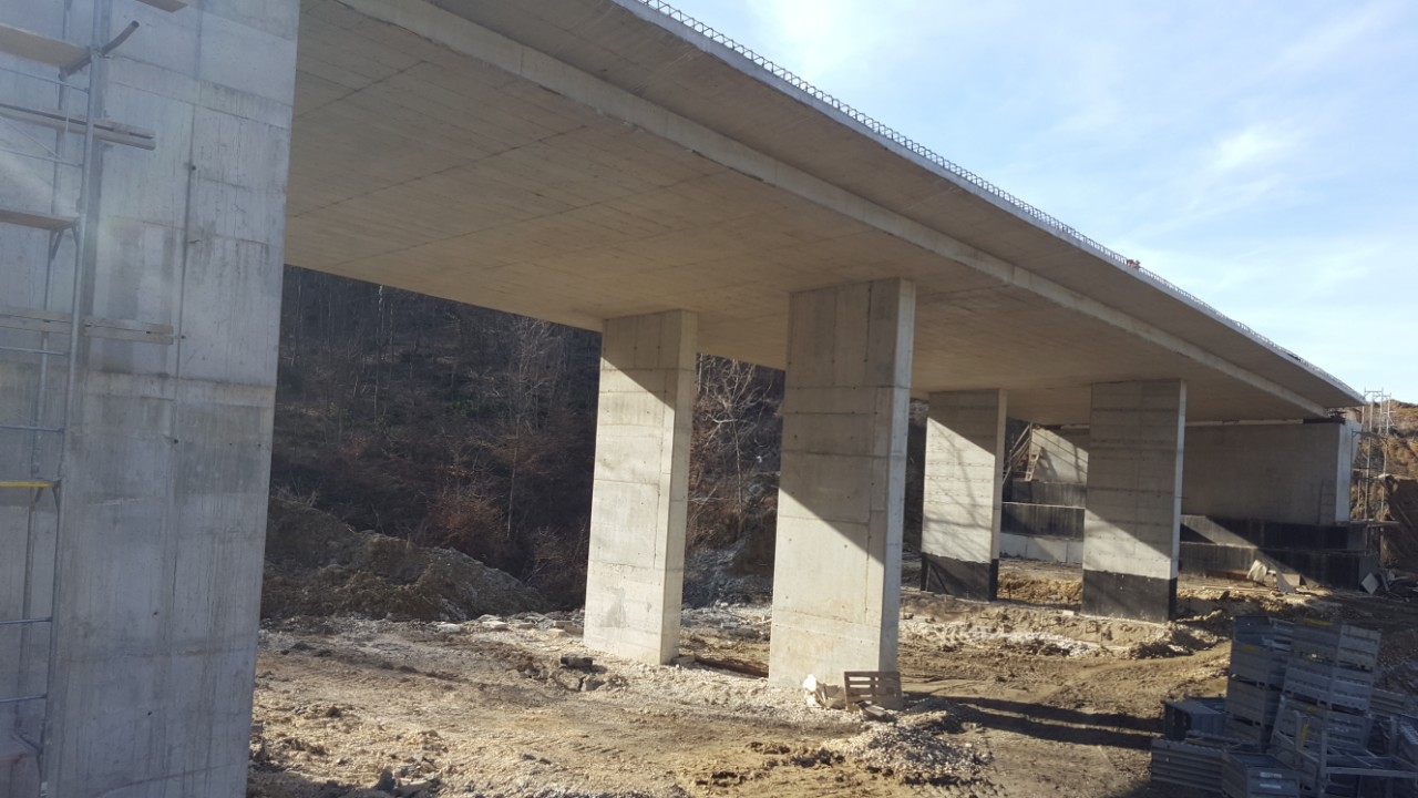 Most na levoj traci je projektovan kao ramovska armirano betonska konstrukcija na četiri polja sa rasponima 15,00+2h18,00+15,00 m. Glavni nosač mosta je, takođe rešen kao armirano betonska kontinualna ploča, livena na skeli. Debljina kolovozne ploče je konstantna i iznosi d=80 cm. Širina ploče iznosi Bpl=11,60 m sa obostranim konzolom raspona 1,50 m. Ukupna dužina mostovske konstrukcije, zajedno sa krilima, iznosi 85,26 m.